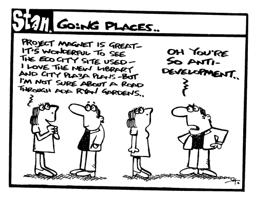 The idea of cutting a road through the middle of the Ada Ryan gardens was especially opposed by the ‘silent majority’.